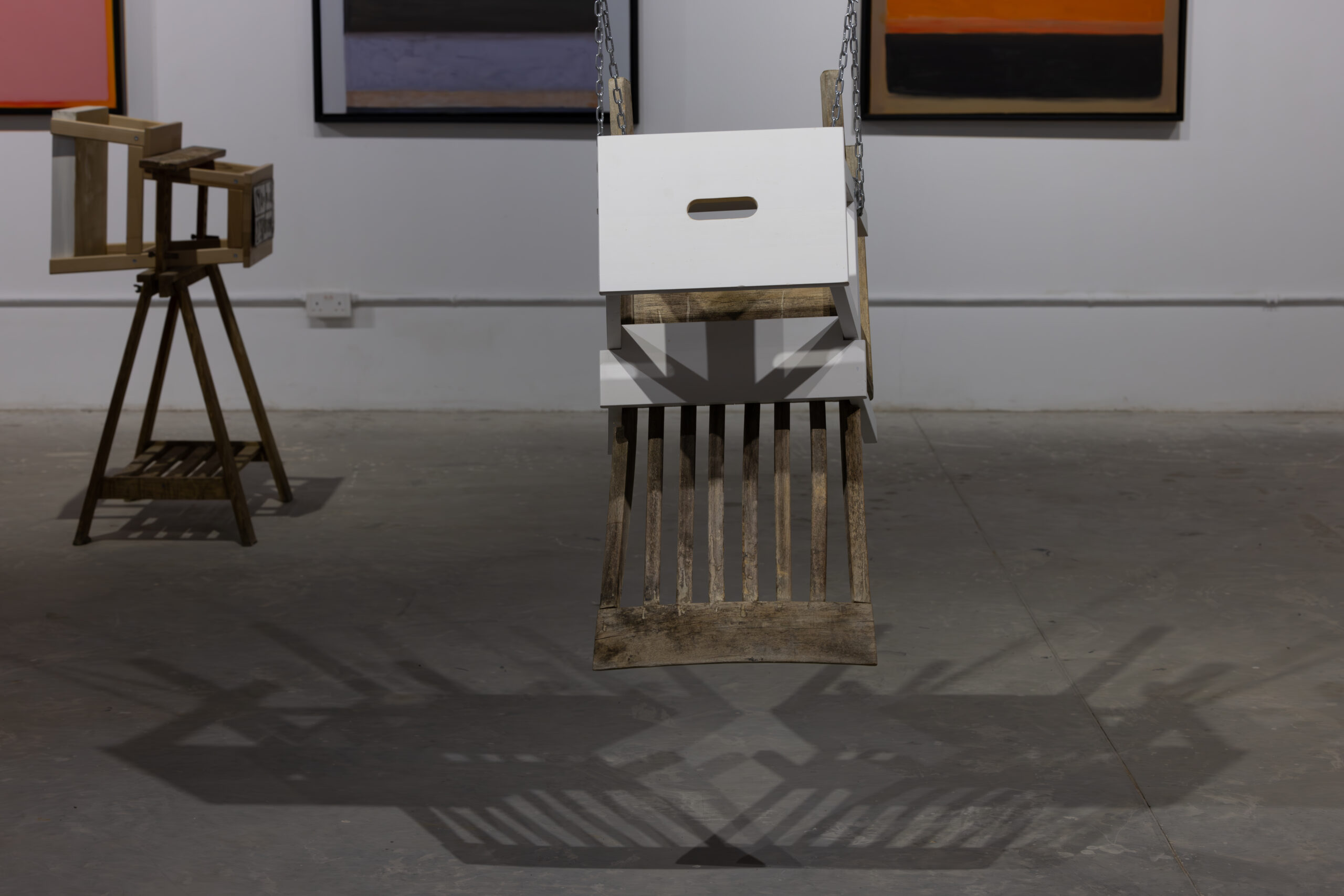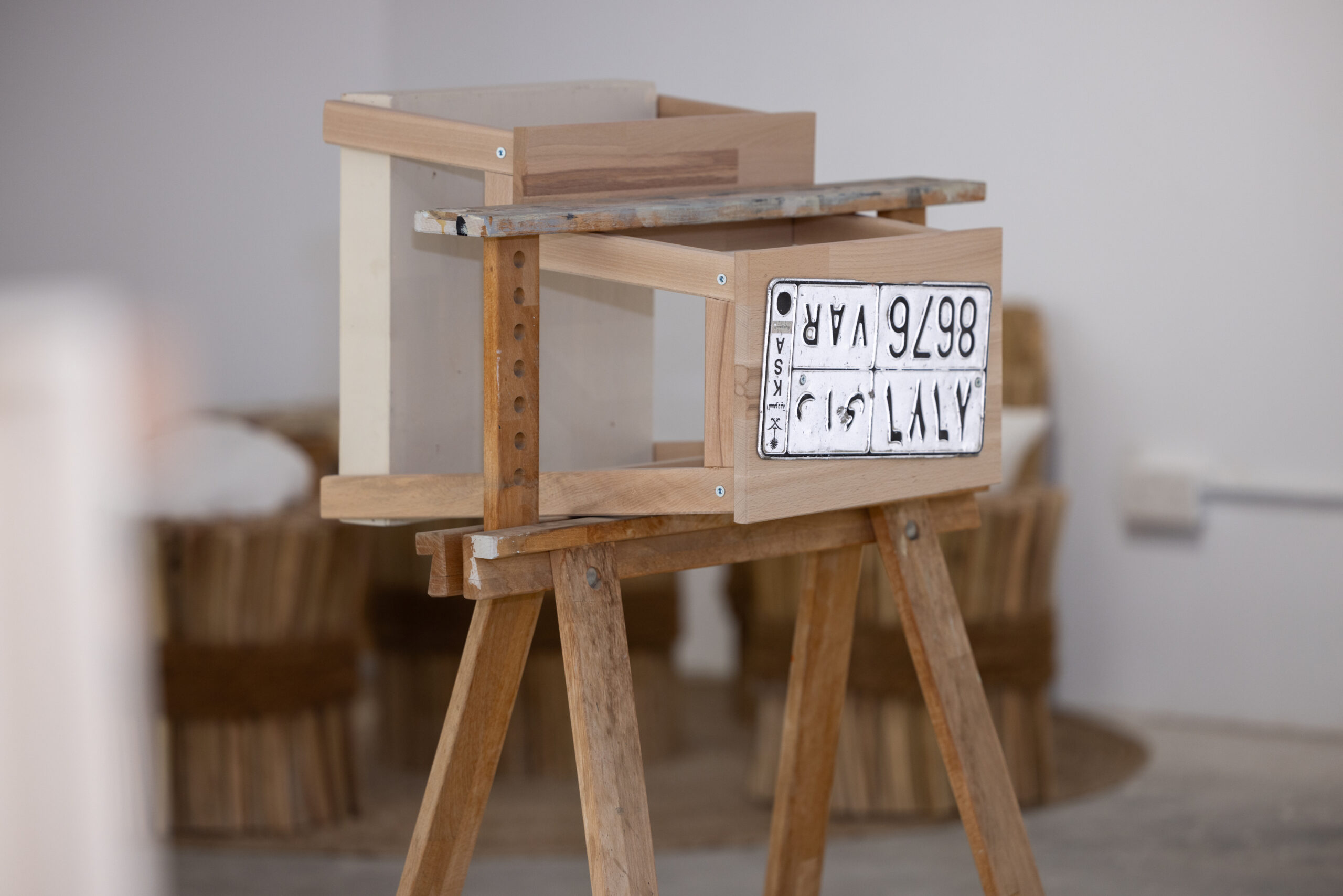 وجد الفنان في شغفه بتفكيك الكراسي والأبواب وإعادة تركيبها وتدويرها خطة أفضت إلى ميل نحو استدامة المواد وإدراج مفاهيم جمالية متباينة عليها.